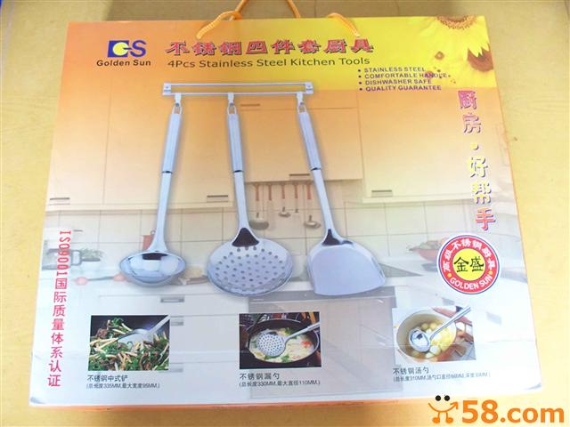 本人代理不锈钢厨房用具,可以批发兼零售,价格便宜实惠,套装厨具一套零售40元一套,批发15件以上可以便宜,可以面议。一套厨具包括不锈钢中式铲,不锈钢汤勺,不锈钢漏勺,不锈钢挂钩。注:也可以单件批发,价钱可以面仪!长期有效!有意购买的可打电话:15119729695 可以在水东一运车站面对面交易!一套零售40元