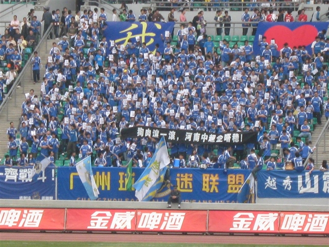 8月2号对河南一战中采用的横幅投票! 1河南球迷不要脸 打人闯卡不给钱! 2过桥不交费 文明看球不免费! 3闯得过收站 走不出越秀山! 4毋忘三年粤耻 誓斩河南老二 5闯卡容易 出山难 6河南要创文 严禁冲卡又打人 7防盗防赋防建业 8欲问河南想闯关 三分留低越秀山