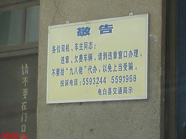 写给别人看的,自己就是这样做的!这就是电白的现象。去年快要取消路费的时候,交管局拼命的查车。有个朋友车给查了,没交路费,车刚给开走,后来就跟着来了个“九八佬”,称给200元可以把车拿出来,但没有任何收据。在讨价还价的过程中,交管局的人打电话给他,要他抓紧搞定,前面捡了车,要他跟上去处理!晕呀!这就是电白!