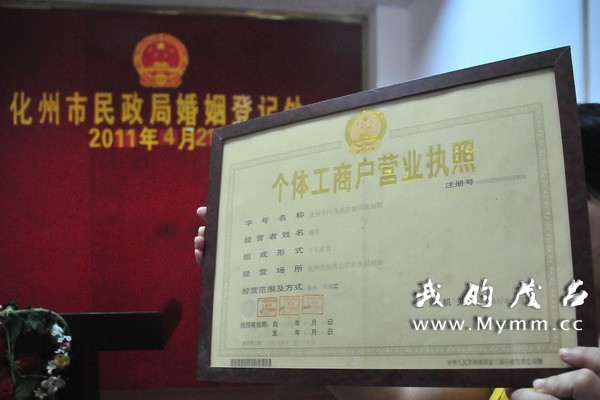 化州民政局内的照相馆的营业执照地址印着是在民政局对面