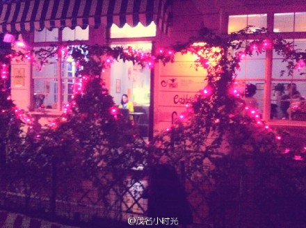 晚上七点多,我和詹校长再跟随程导等一行驱车到茂名市区,观看他们进行《乡月》的拍摄工作。在一家名曰“小时光”布置得非常温馨的甜品店,他们开展了一天最后的拍摄工作。演员肖老师经过两次化装师的锦上添花,美如车模,在程导等的导演和布景下,情景交触,似一边品茶一边赏月,把这首诗表演得淋漓尽致。