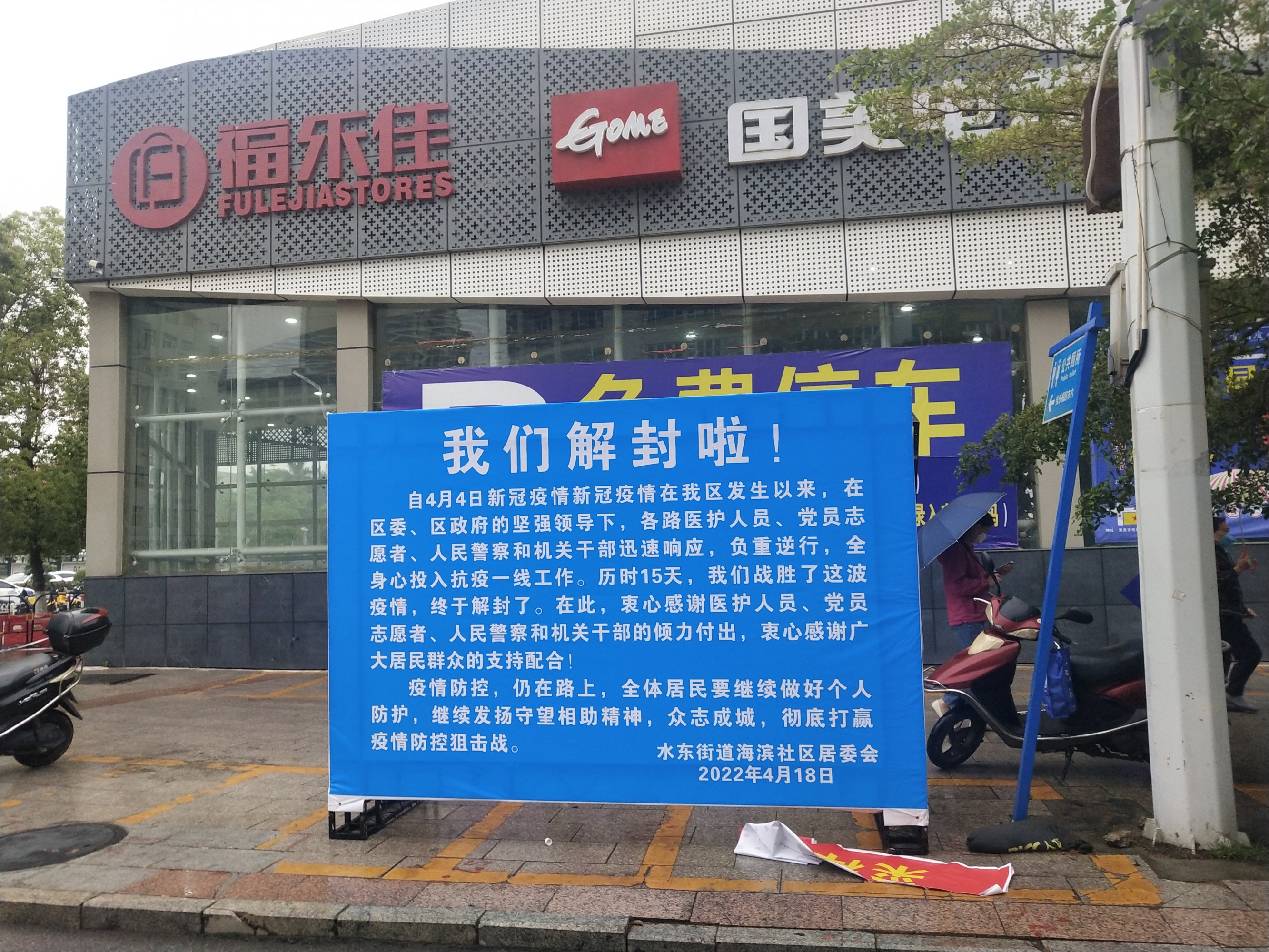 解封不解防,请广大居民朋友继续落实疫情防控个人责任,自觉遵守疫情防控有关规定,坚持戴口罩、勤洗手、常通风、一米线等良好卫生习惯,进入公共场所时主动扫码,自觉接受体温测量,及时主动接种新冠病毒疫苗。