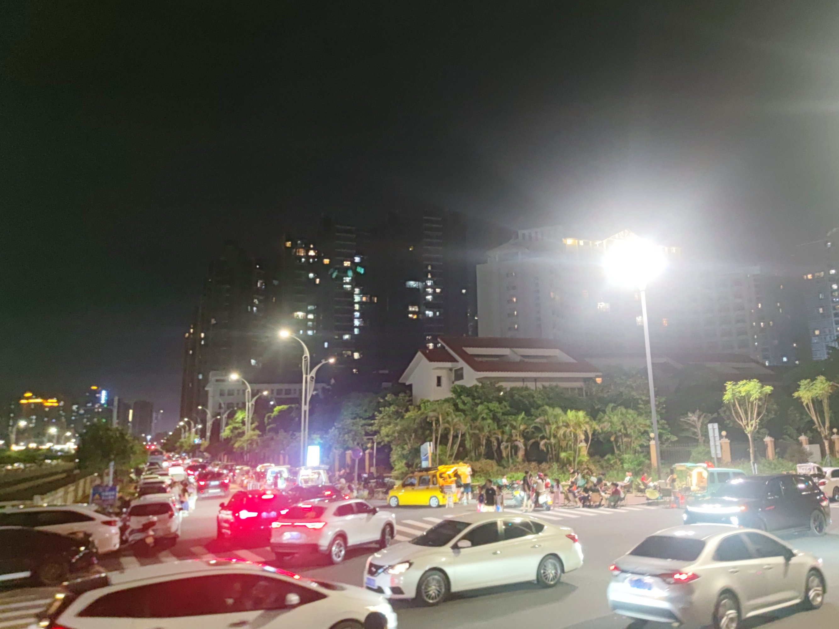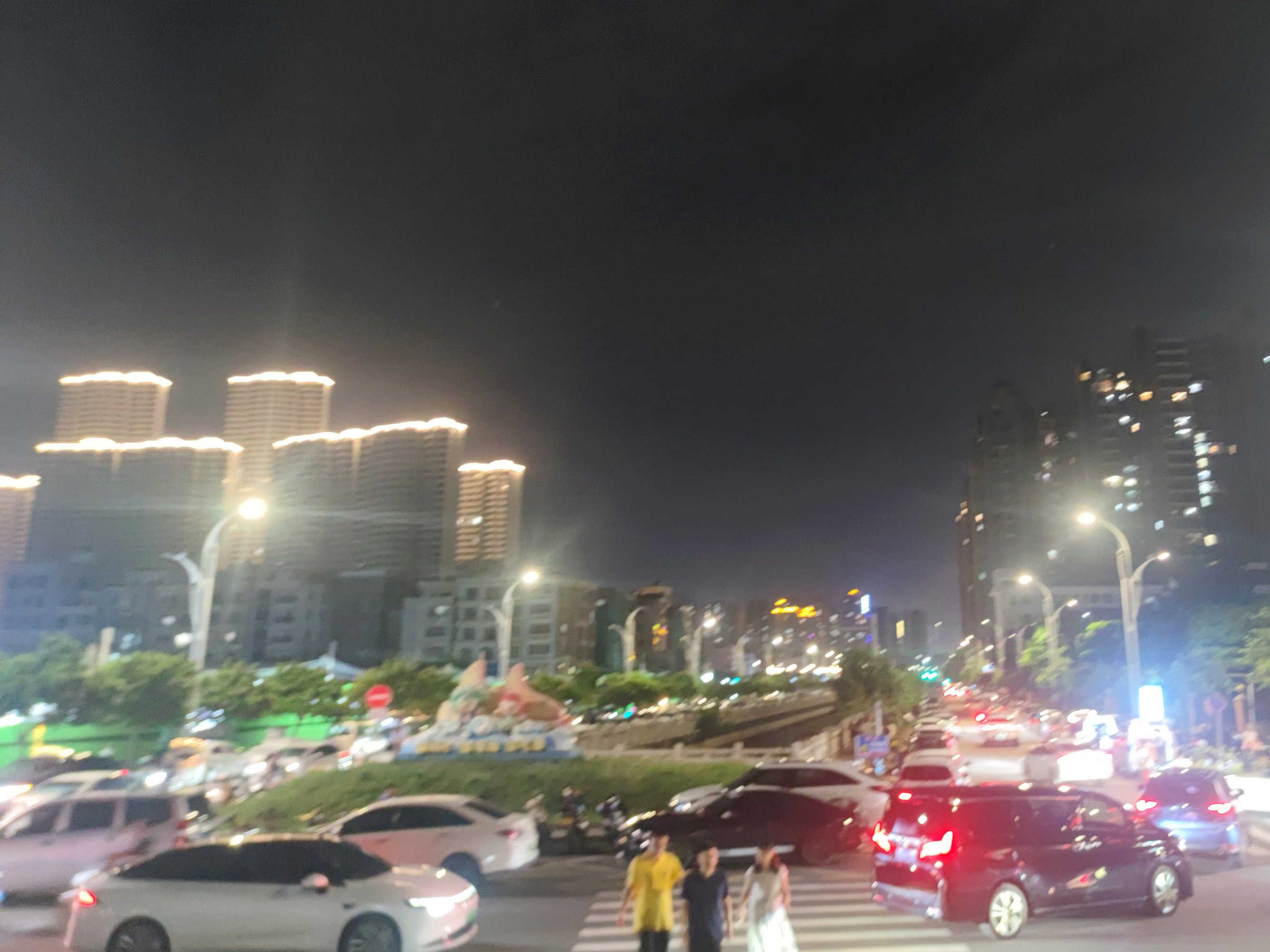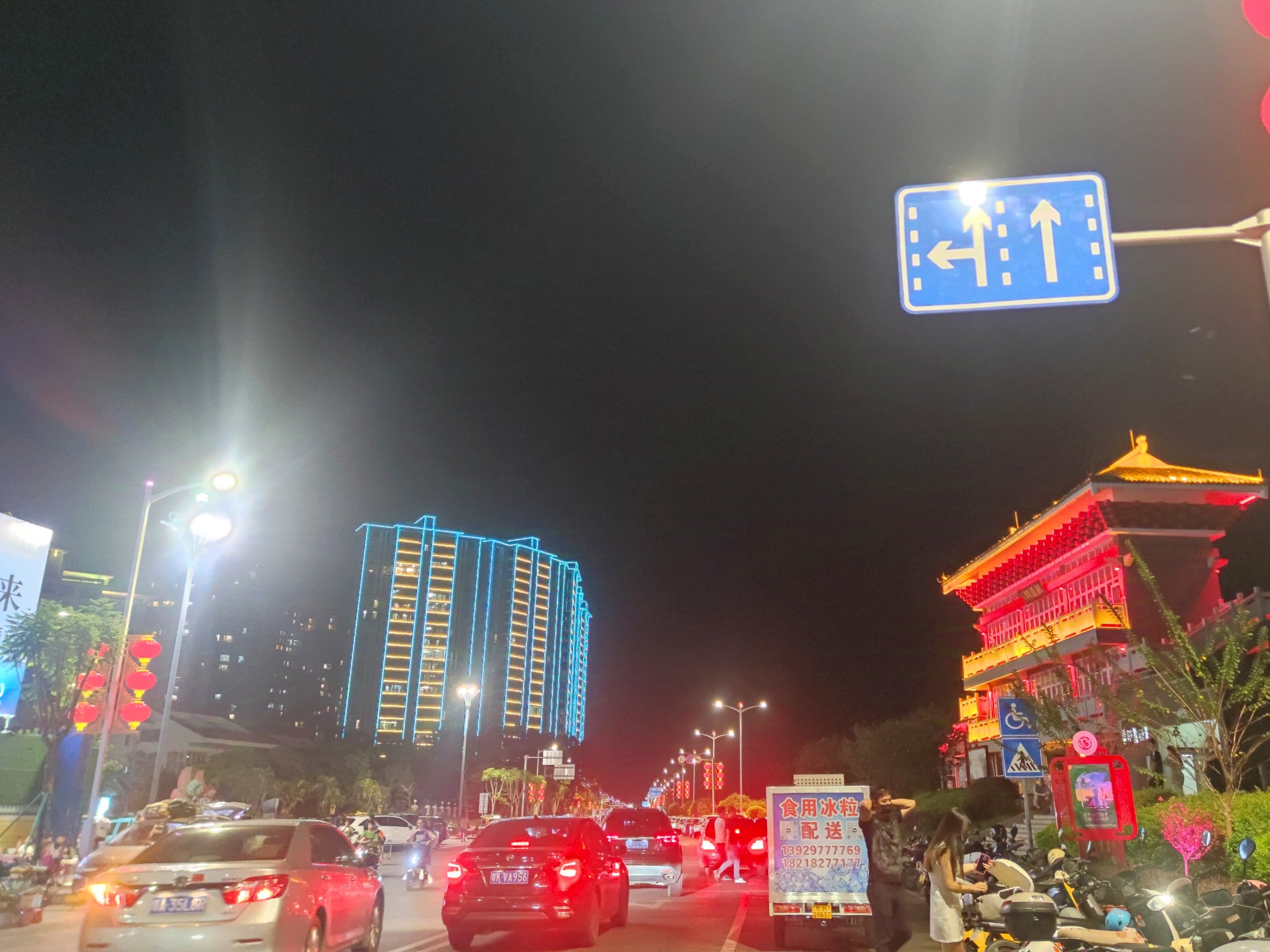下面图示的是较早前的情景,观鹭阁等些灯还亮着,依然是人来人往车来车往的,身处其中的或路过经过的人,感觉好热闹,好热闹...