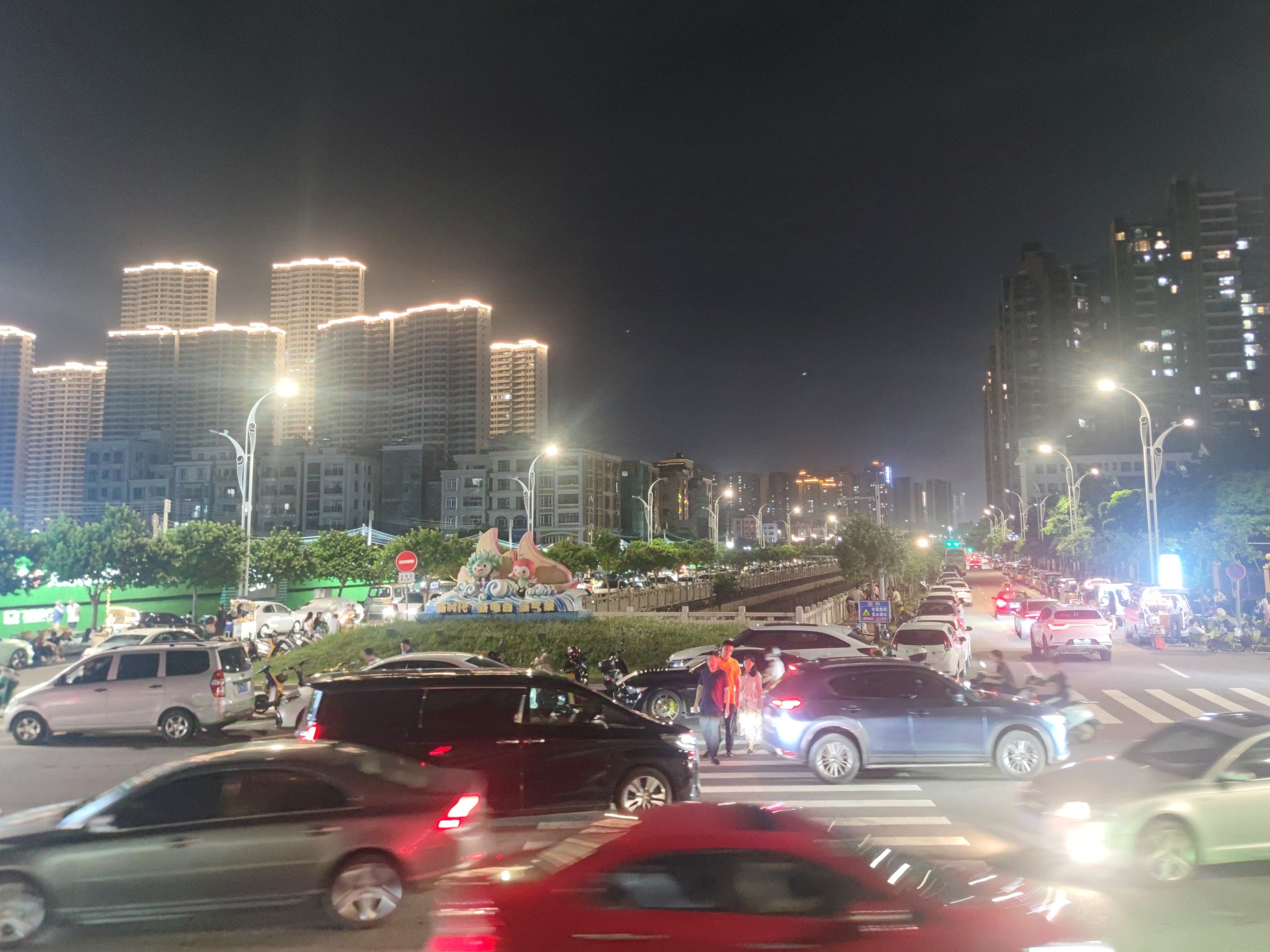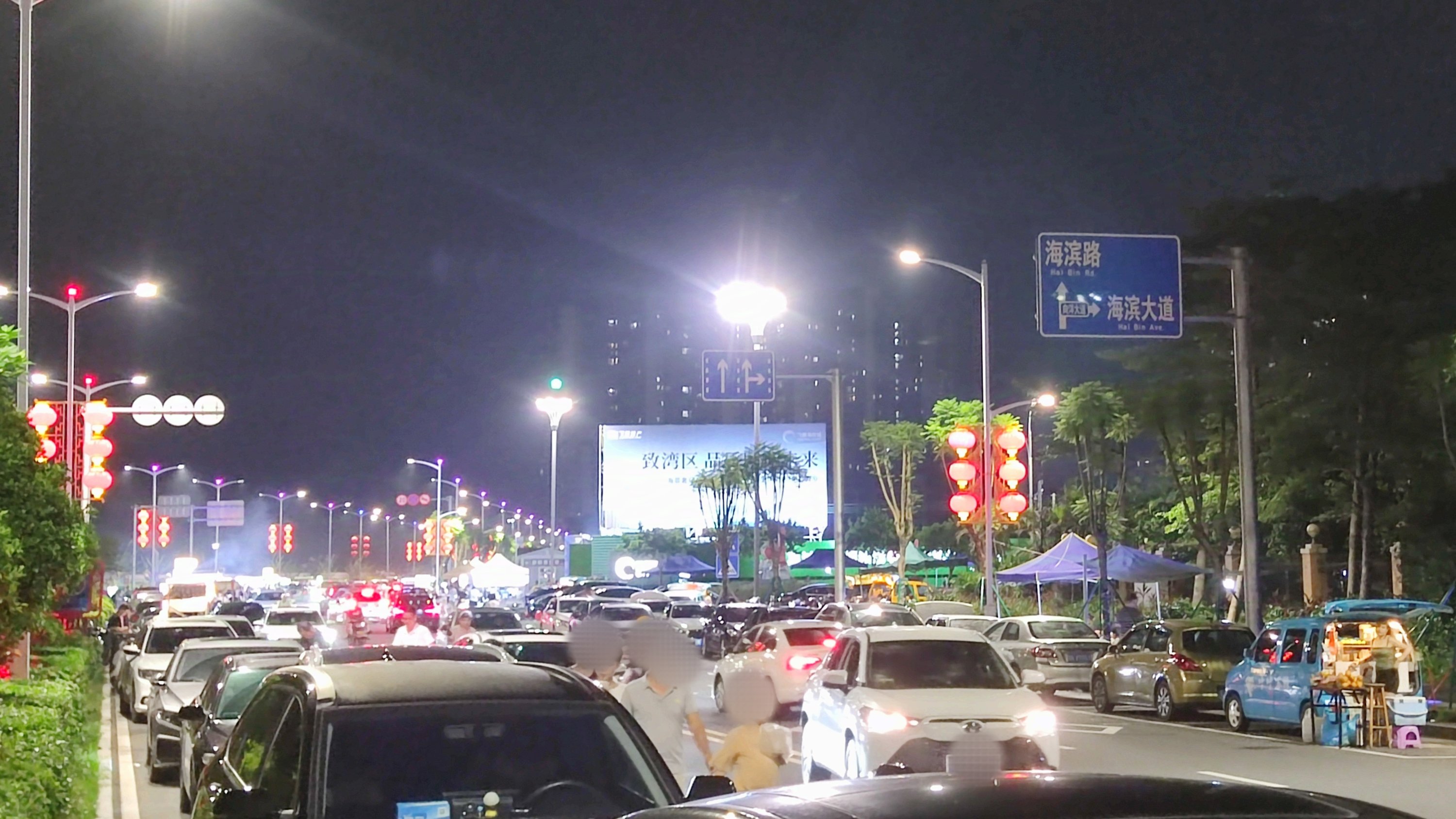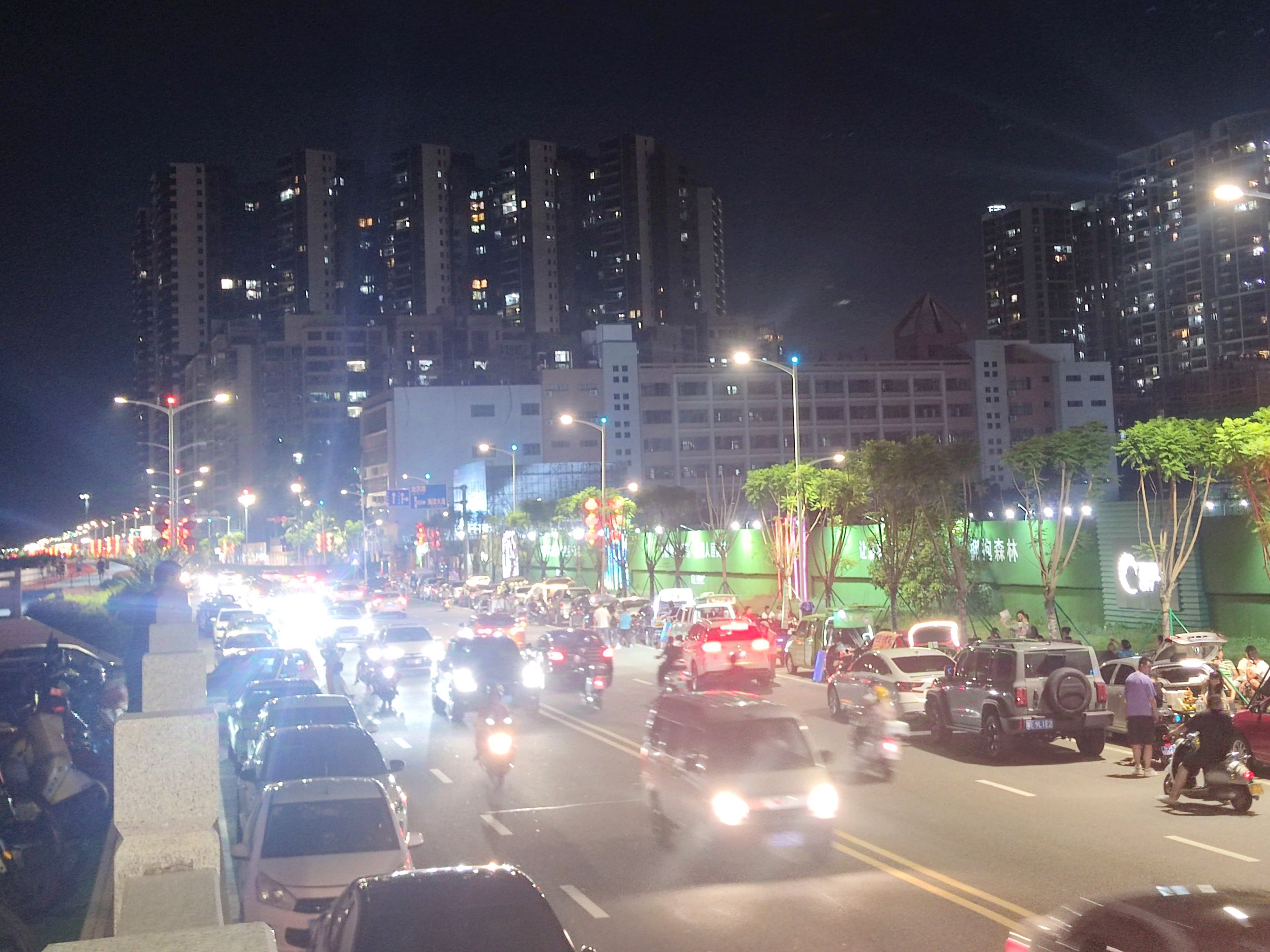 下面图示的是较早前的情景,观鹭阁等些灯还亮着,依然是人来人往车来车往的,身处其中的或路过经过的人,感觉好热闹,好热闹...