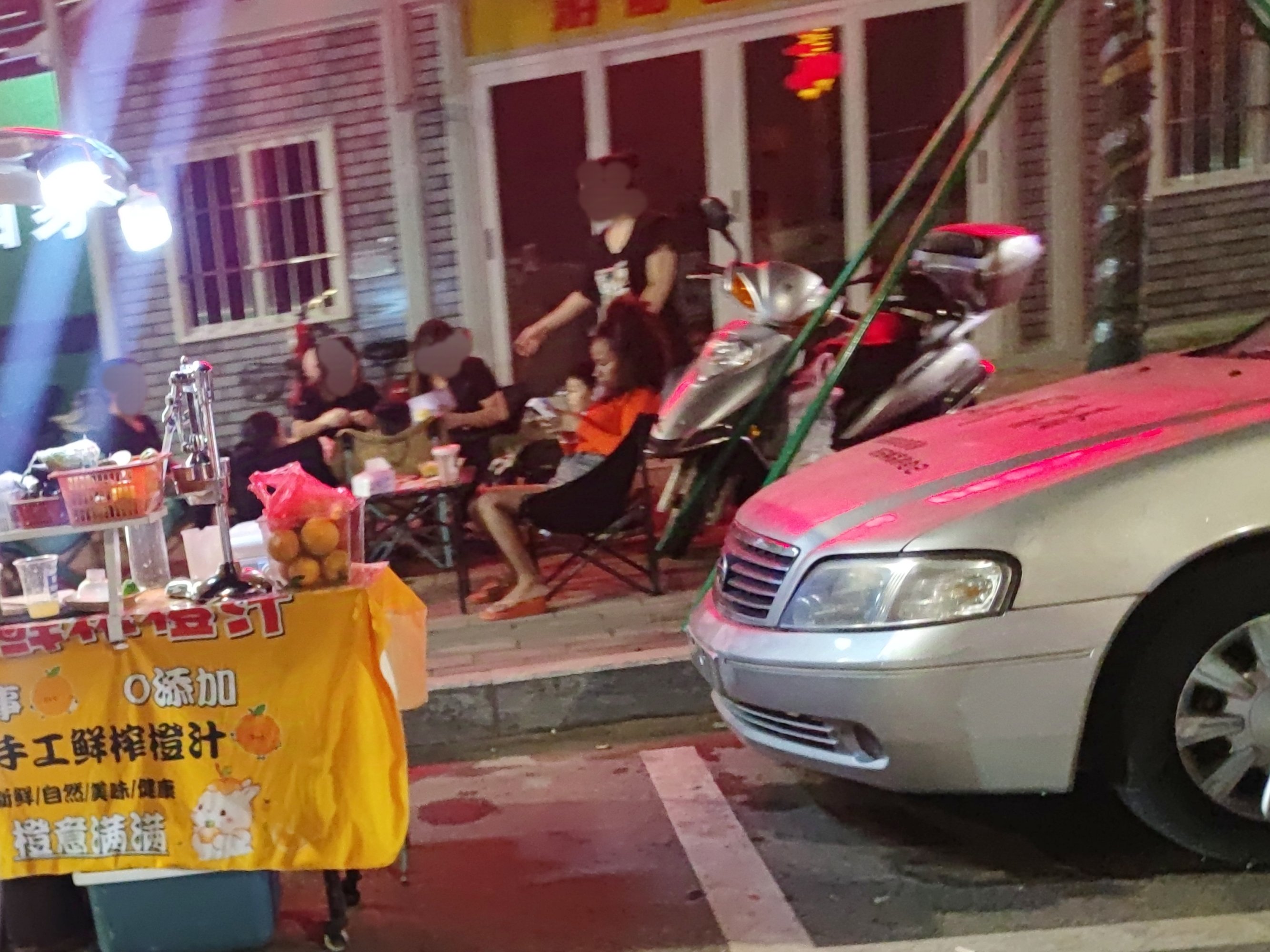 平常晚都有点热闹了,如果今晚天气好,又遇周六日节假,诂会有点一热闹...在此前前些夜晚,在下图此车载冰檬茶档上见有一位外国的女孩也在此...