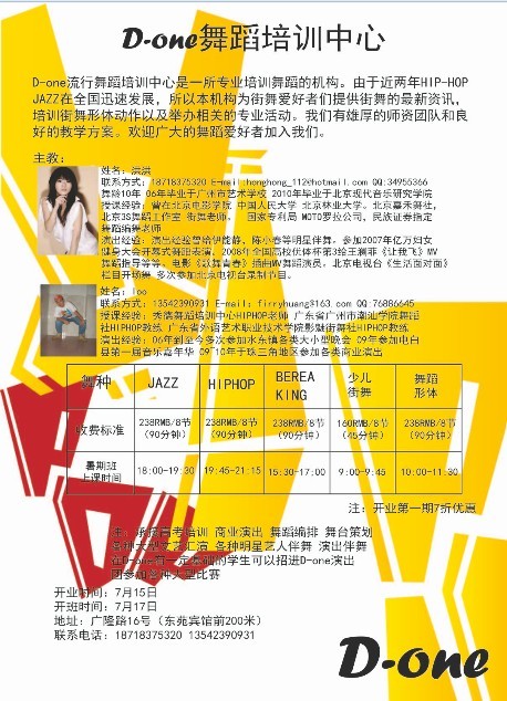 D1舞蹈培训中心正式开张!现正接受报名。报名热线18718375320