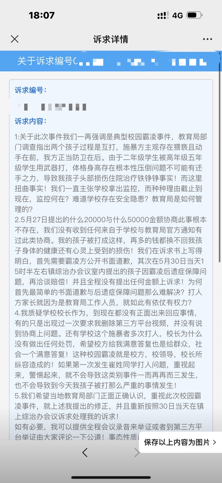 4.我方明确提交到12345诉求上,包括多次与各位部门领导协商上首先要求对方与对方孩子的公开书面道歉,保证书,其余赔偿费用(合理细项一一列出由双方协商同意后执行),为何网络上流传出多少钱多少钱这些方案?完全不一致!是不是有心人故意为之!目的何在?我们提醒有心人,造谣是有成本的,成本不小,我们虽然是平民百姓,但是也会拿起法律武器捍卫自己!受害者有罪论在我们这里行不通!
