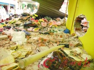 与玲珑服装店一样,楼下其它十余家服装批发档口也都几乎同时被砸,成捆成捆的服装堆在马路旁。