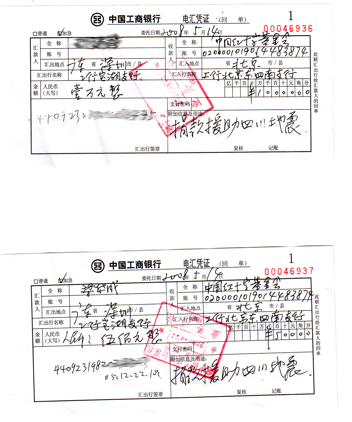 所有赈灾善款,都将捐献到中国红十字基金会,并通过中国红十字基金会直接送往灾区!