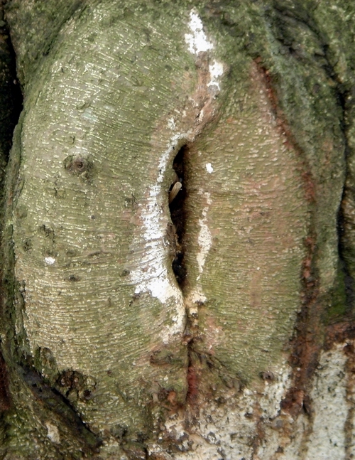 这三棵细叶榕树生长在古峰村委会一条约6米宽小河的两岸,清澈的河水从树下缓缓流过。据该村一位今年已80多岁的董伯介绍,他小时候就听爷爷说,村边小河生长着两棵隔河相望的榕树,两树的树枝越长越近,后来就缠在一起了,最后长成了二合为一的“夫妻”榕,当时这两棵树有100多年了,照此推算,这两棵树至少生长有200多年了。到了上世纪80年代,其中一棵细叶榕树的一支气根伸到地下,今又已成大榕树了。记者在现场看到,被当地人称为“公”树的细叶榕树杆直径有3米宽,并有5棵子枝,都长得枝繁叶茂,如同一个身体强壮、英俊伟岸的中年男子汉。而在对岸的另一棵细叶榕,原只是单枝,主杆直径约1米,如一位身材苗条,丰韵犹存的中年妇女,当地人称为“尽毕敢堕拧A娇瞄攀骷淠翘醺艉酉嗔的枝条直径足有1米宽,如男人坚强有力的手臂紧紧地拉住情人,因此,也有“情人”榕之称。董伯说,以前小河上没有桥,村里人过对岸干农活,都是从这“情人手”经过。说来也奇怪,几十年来,无论大人和小孩从这“情人手”经过,没有一个人从上面滑落下来,所以村里人对这“夫妻”榕蛮有感情的。现在河上建起了小桥,人们不用再攀树过河。