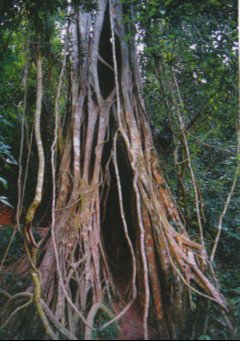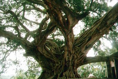 化州市林尘镇古峰村委会有两棵细叶榕树,历经200多年缠缠绵绵的“相恋”,成为“夫妻”榕。到了上世纪80年代还“生”下一棵粗大的细叶榕树,三棵树覆盖面积达2000多平方米,蔚为壮观。