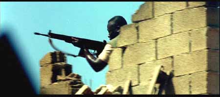 索马里民兵用的枪大多数都是AK这种便宜实用简单易用的武器。而充斥电影画面上的基本上都是折叠枪托的AKMS,此外还出现有RPK轻机枪。而那个主要的“大反派角色”在领枪时则选了一把AKS-74U。和其他成天内斗的非洲小国一样,索马里的民兵武装大多没有经过严格的军事训练,只会拿起枪来乱扫一通,而AK的连发精度比较差,因此尽管这种“群众性火力”相当密集,但子弹大多打到天上去,对美军士兵造成的伤亡不大。