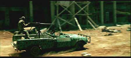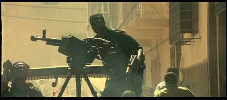 在后面装有一挺重机枪的小型卡车是当时索马里各个军阀的主要“技术装备”,俄制的武器是索马里武装的主要武器,电影中的卡车上的重机枪一半是德什卡(DShk)12.7mm重机枪,另一半则是M2HB的。
