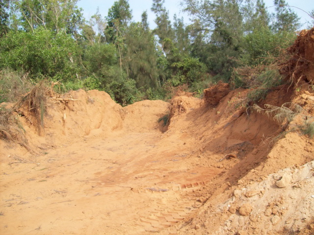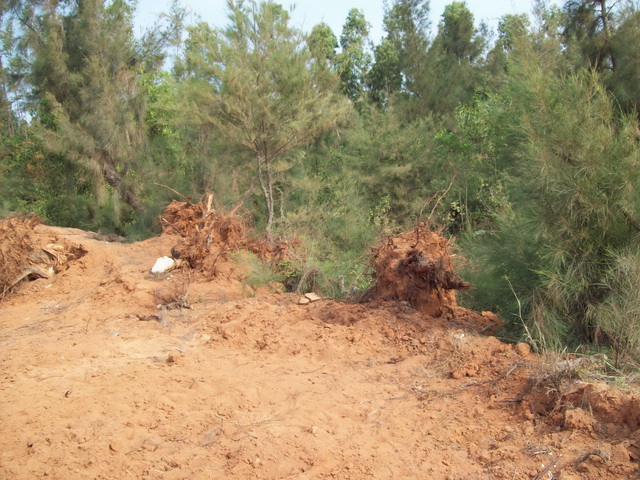 在2011/11/15村委会主任兼支书严永生和茂名市曾经是茂名市人大代表的个体老板杨仕进官商勾结又毁林挖土卖,他们以地价2800元/亩,树苗补1500元/亩,共4300元/亩的价格购买防风林来毁林挖泥卖。在不理会广大村民强烈反对同时,又没有办理任何审批手续和林木砍伐证的情况下,叫来黑社会镇压村民,开来钩机强行毁林挖土来卖。后来在村民拼死阻拦下他们才暂时停止,之后大家一点已经有五六十棵被毁。他们说“今天人少明天再多叫黑社会人来,县里的当官是我兄弟谁都拿我没办法”