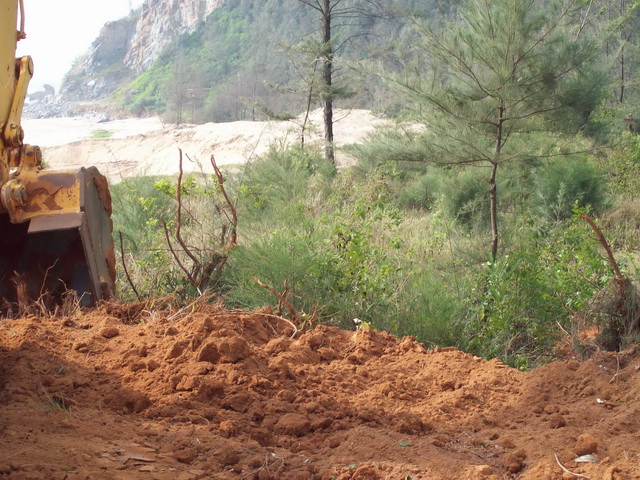 2011年11月24日星期四,早上钩机和运泥车又来了,严永生说已经从茂名市和电白县搞好手续可以砍树挖泥了,细查一下才知道原来昨晚他和管理区的党员开会,要大家党员签名就可以毁林卖地了。我们在万般无奈的只有打电话给县委书记李玉楷,李书记叫我们打电话给电城镇委书记吴建中。我们打电话给吴建中,他说“我已经处理啦,他们现在没有毁林啊,以后你们上访要合理合法才可以。”我们告诉他现在严永生还在继续毁林挖地,他都还不信。后来在我们再三恳求下他才说等会派人去看看。严永生他们又砍下一大片树林,我们左盼右盼还没有镇政府人过来;我们全体村民忍不住愤怒,自发出来用血肉之躯塞满运泥车的路,并且站在钩机底下制止了钩机挖泥后,吴建中派来的一个不敢报名自称是党委的人才到来,叫他们收工。