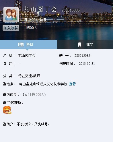 求 求知 学前班 注册 2008-12-06 消息 43 反馈评分 0 点数 0 2013-10-31 #21 QUOTE(湖海山人 @ 2013年10月31日 Thursday, 09:44 AM) 代朋友发帖:龙山教师群 283515085,有兴趣的教师请加入,要求群内单位加实名,情投则合,缘尽则散。 [snapback]3593614[/snapback] “合久必分,分久必合”,Q群是用来互相讨论问题,学习知识的。但,听说龙山某个群被强行解散,是否为真?