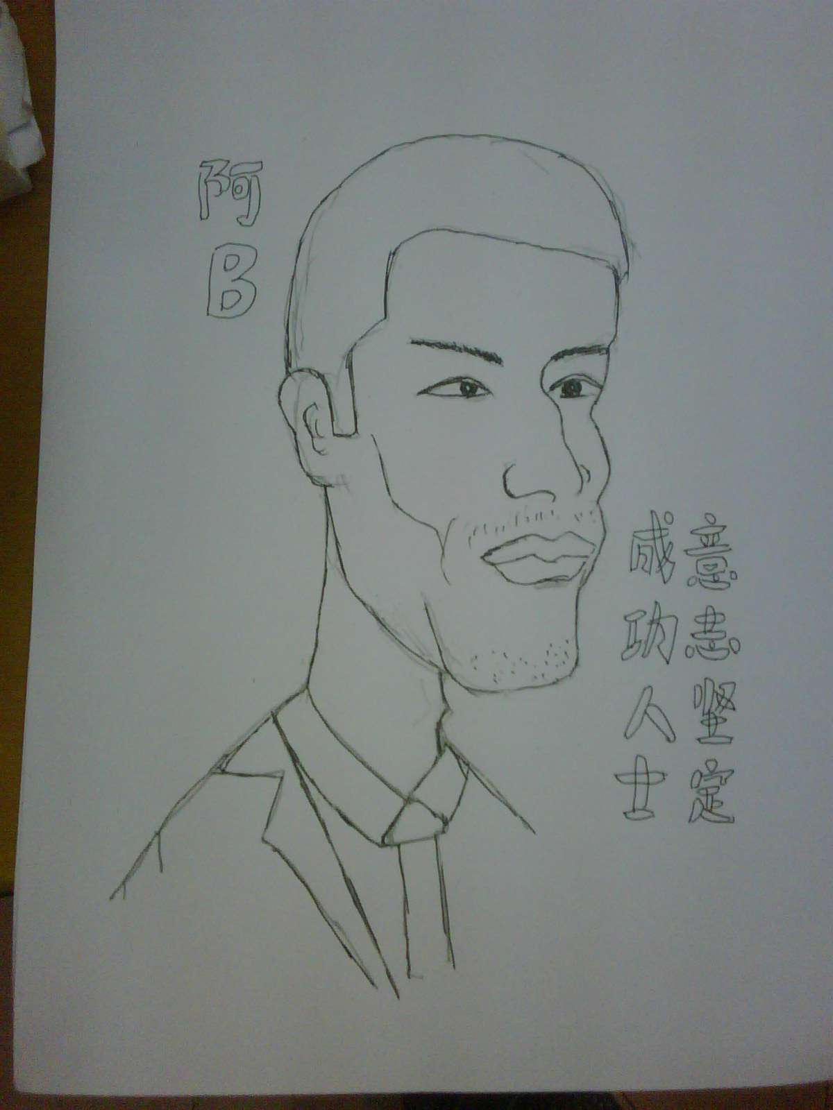 我认为最象的一张,阿B,凭记忆画出,比较满意。