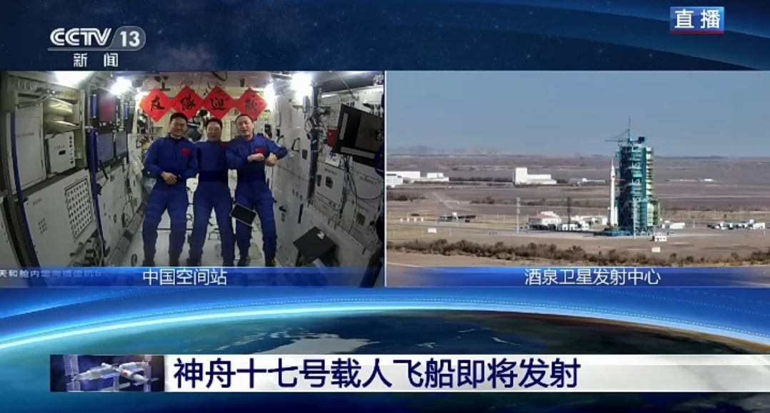 交流 庆祝神舟十七号载人飞船今天11时14分发射,一笑(回文联)出句:上天飞船飞天上,欢迎对句