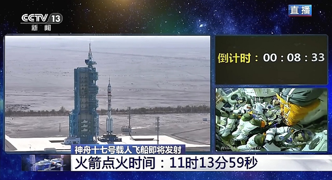 庆祝神舟十七号载人飞船今天11时14分发射,(回文联)出句: