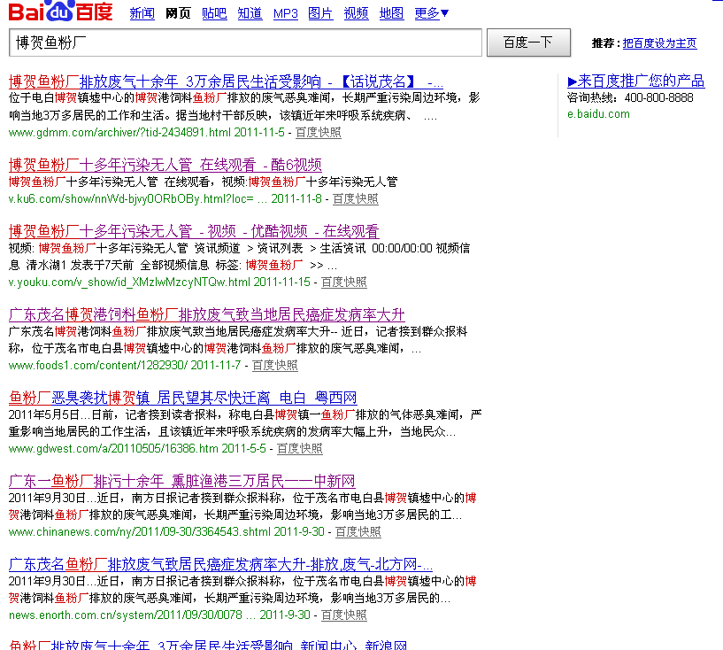 博贺鱼粉厂污染长达十多年,受污染居民达3万多人,去年死于癌症者就有十多人,十多年来群众不断向上各级部门投诉、上访,每年的人大政协提案都提及此事,各电台、各电视台、多路报社记者都跟踪报道,可是环保局不当回事,烟照喷、恶臭依然。