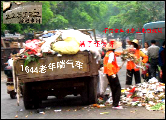 而搞好卫生的关健是在街道摆放垃圾箱,更换垃圾车(应该是封闭的)。