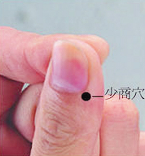 按摩上图的少商穴,每只手10分钟,早晚各一次