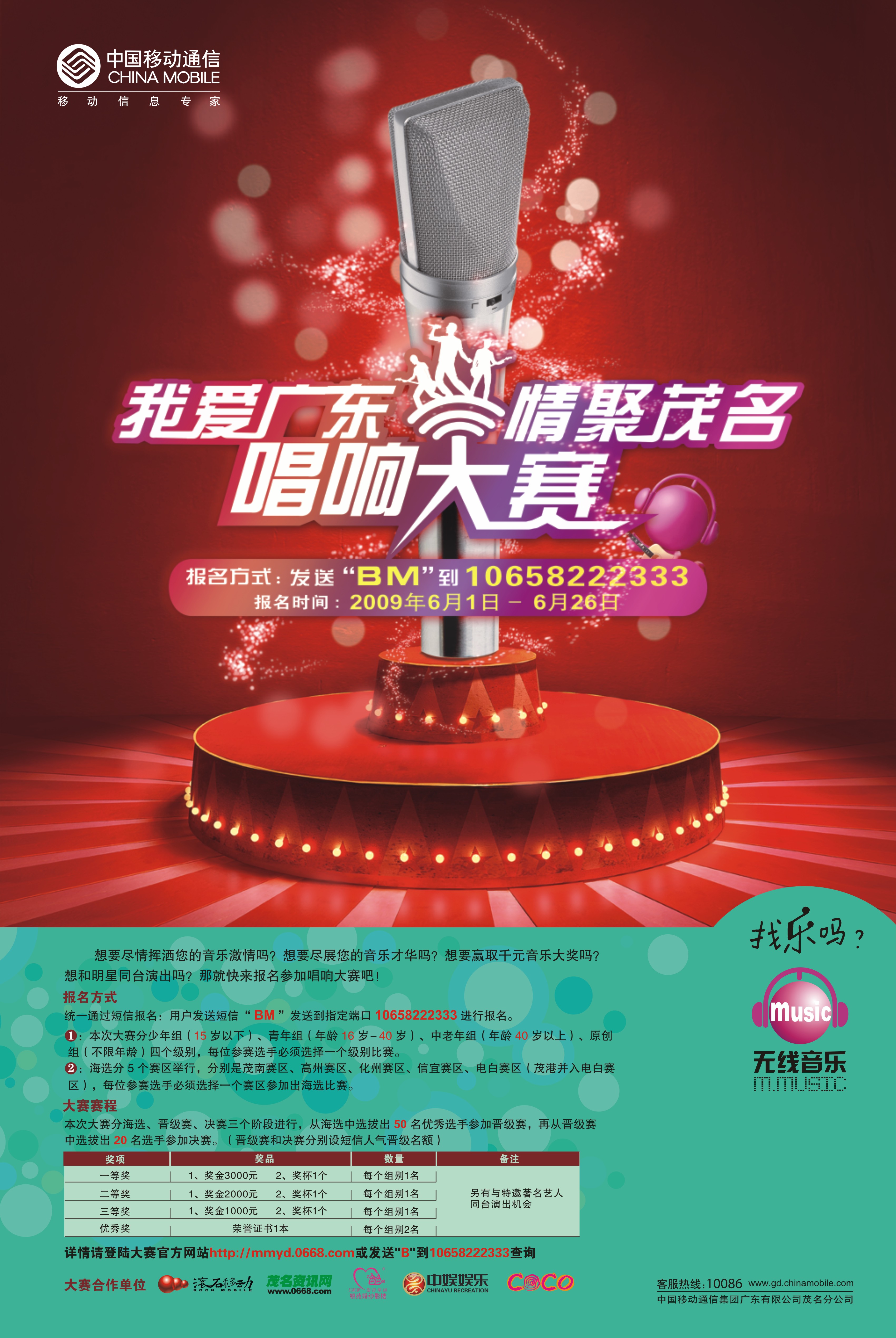 屺懔髂軎舂m 小学一年级 注册 2008-09-19 消息 131 反馈评分 0 点数 0 2009-06-04 #1 “我爱广东・情系茂名”唱响大赛火热报名中... [attachmentid=214520] 内容看不清楚的可到中国移动服务厅咨询或登陆官网:http://mmyd.0668.com 附件 海报570X860MMv8.jpg 1.7 MB · 查看: 518