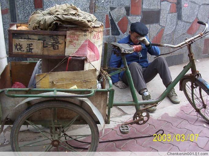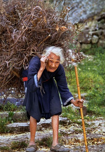 看看这位老人衣服上一块块补钉,