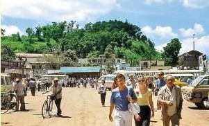 旅行团都是外国人,他们在火车站乘坐早就准备好的小巴车,游览了深圳水库、东门老街,在饭店吃了饭,还参观了一个幼儿园。
