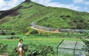 深圳与香港的边境,铁丝网非常清晰地沿着山腰蜿蜒
