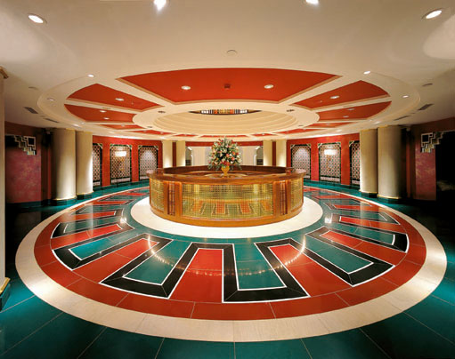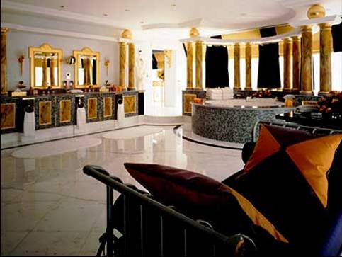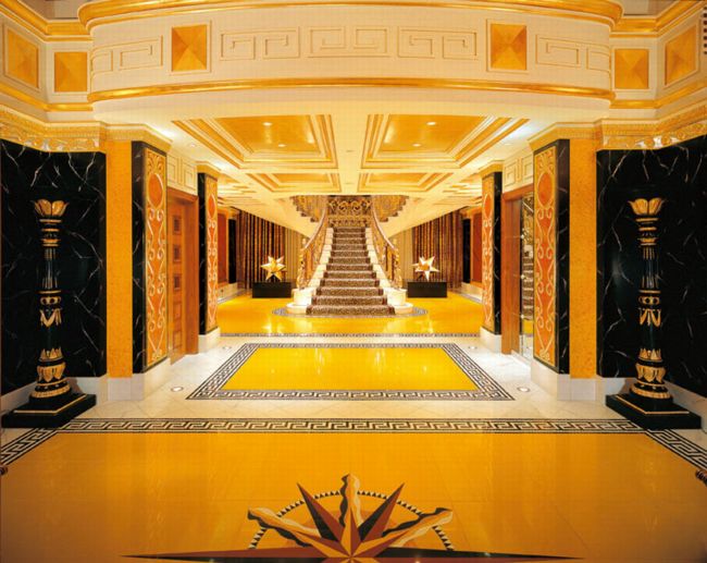伯瓷是世界上惟一的建筑高度最高的七星级酒店(因为饭店设备实在太过高级,远远超过五星的标准,只好破例称它做七星级),开业于1999年12月,共有高级客房202间,建立在离海岸线280米处的人工岛Jumeirah Beach Resort上。伯瓷糅合了最新的建筑及工程科技,迷人的景致及造型,使它看上去仿佛和天空融为一体。伯瓷的工程花了5年的时间,2年半时间在阿拉伯海填出人造岛,2年半时间用在建筑本身,使用了9000吨钢铁,并把250根基建桩柱打在40米深海下。饭店由英国设计师W.S. Atkins设计,外观如同一张鼓满了风的帆,一共有56层、321米高,是全球最高的饭店,比法国艾菲尔铁塔还高上一截。