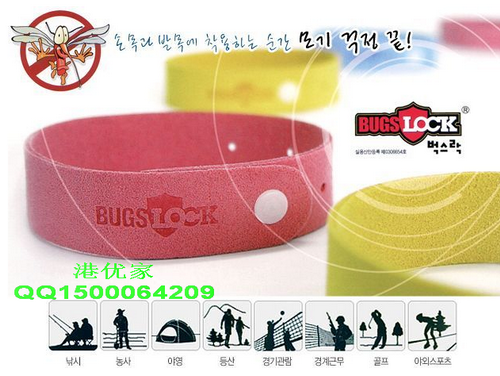 "Bugslock" 是一种散发100%自然香气的防蚊产品。当你把"Bugslock" 带在手腕和脚踝上时,它散发出来的气味可以阻止蚊虫的叮咬。"Bugslock"很容易配戴,在任何时间任何地点,想要使用它很方便,效果持续240小时,不想使用时请把它放回原包装保存。用完的"Bugslock"还可以放在汽车和卫生间里除异味。"Bugslock"无毒也无驱蚊胺是个很安全的产品,在全球,各种年龄的人们都在使用它。建议三岁以下的婴儿配戴在脚踝,而不是手臂上。