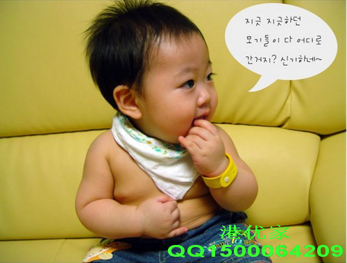 全家适用的防蚊手带,采用纯天然香茅精油制成,绝不含胺等任何化学成分!无毒无害!宝宝使用安全放心,不沾染衣物,无刺激,贴身保护,避受蚊虫叮咬,。磨毛式的纺织布手带,时尚动感,很有装饰性。
