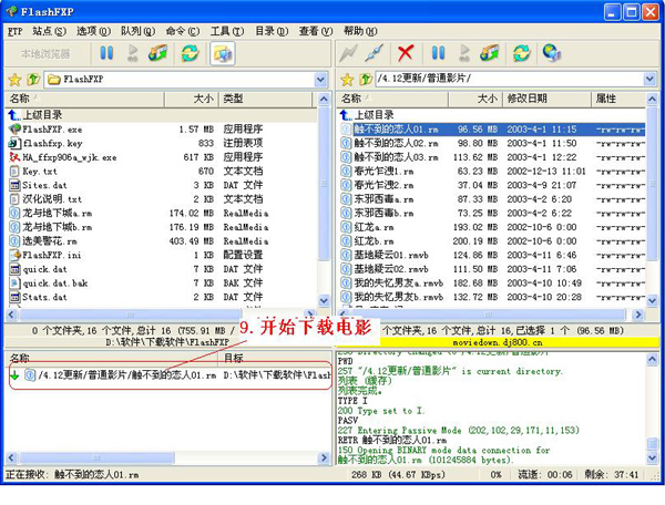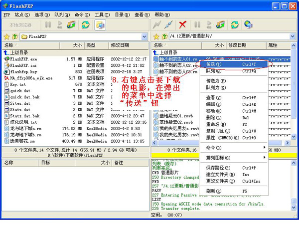 FlashFXP 是一个非常流行的 FXP/FTP 软件   融合了一些其他优秀FTP软件的优点,如像 CuteFTP 一样可以比较文件夹,支持彩色文字显示;像 BpFTP 支持多文件夹选择文件,能够缓存文件夹;像 LeapFTP 一样的外观界面,甚至设计思路也差相仿佛。支持文件夹(带子文件夹)的文件传送、删除;支持上传、下载及第三方文件续传;可以跳过指定的文件类型,只传送需要的文件;可以自定义不同文件类型的显示颜色;可以缓存远端文件夹列表,支持FTP代理及 Socks 3&4;具有避免空闲功能,防止被站点踢出;可以显示或隐藏“隐藏”属性的文件、文件夹;支持每个站点使用被动模式等。
