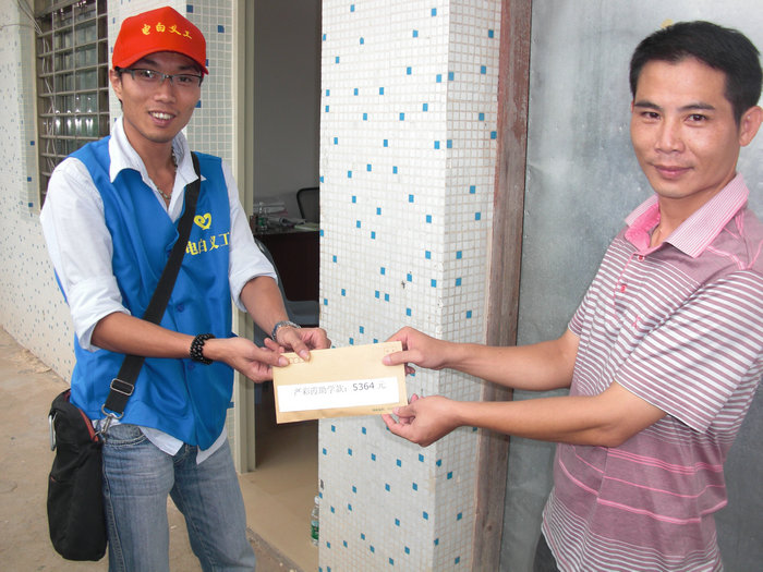 爱心人士良哥、海哥从阳江赶赴电城与我们会合,送上700元的慰问金