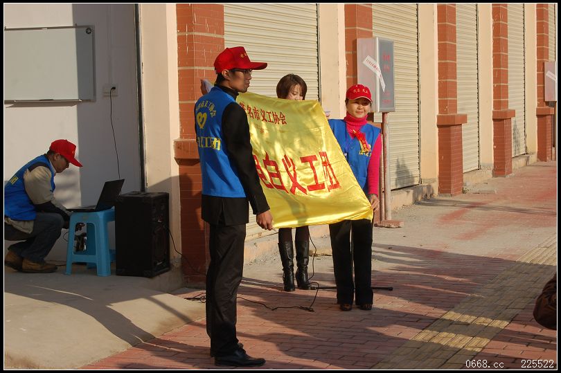 还没到早上8点半钟,义工们便早早地来到了现场,只见他们都搓着双手、呵着热气,看样子他们确是冷得可以。但每个人的脸上都兴高采烈的,只见他们都大声地喊着:“有你有我有义工,这个冬天不太冷!”