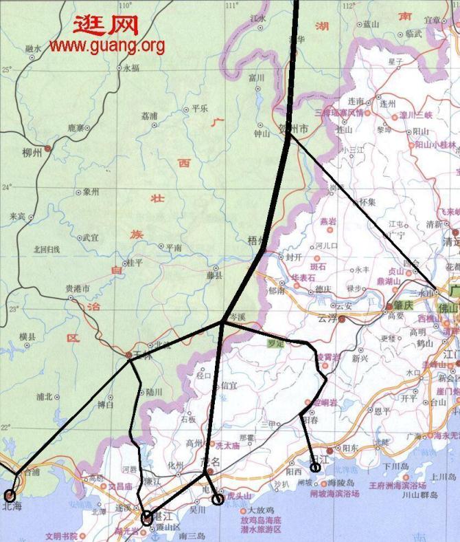 这图的岑茂段铁路走向有误,应是连接三茂铁路电白站而不是茂东站。