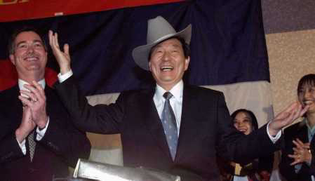 1999年,朱F基访美也被戴上礼帽。