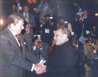 里根初上台时,美国国内经济不景,但时近80年代中期,其国内经济趋好,于是里根形象大为改变,里根因此也顺利地连任了二届总统。