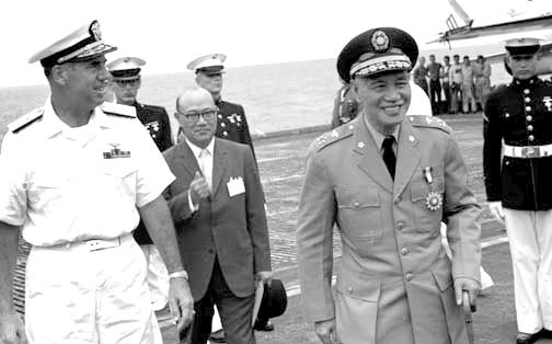 美国“企业”号核动力航空母舰是世界上第一艘核动力航空母舰,,于1961年11月正式加入美国海军太平洋舰队服役。1966年3月15日,应美国太平洋舰队司令官小格兰特・夏普的邀请,蒋介石率“国防部长”蒋经国及14名陆海空三军高级官员访问了停泊在台湾水域的“企业”号航空母舰。在大约四个小时的访问中,蒋介石参观了军舰上的机库和修理库,包括生存设备及自动通信设备演示,还观看了舰队的飞行表演和火力展示。