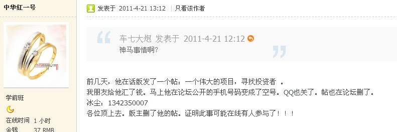 个人在那里发了同样的帖,但被那里的话说茂名的梁伯赢版主无故转移,问版主原因,但得到那里话说茂名版版主的答复竟然是怀疑个人是骗子,个人曾在茂名在线任职网站运营策划总监一职,现已离职,但还是荣誉会员称号。得到如此的答复着实意外和出离愤怒!