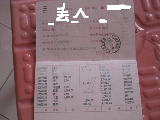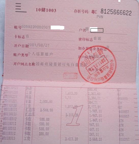 下面是存折的真实图片(手机拍摄后用QQ截屏)