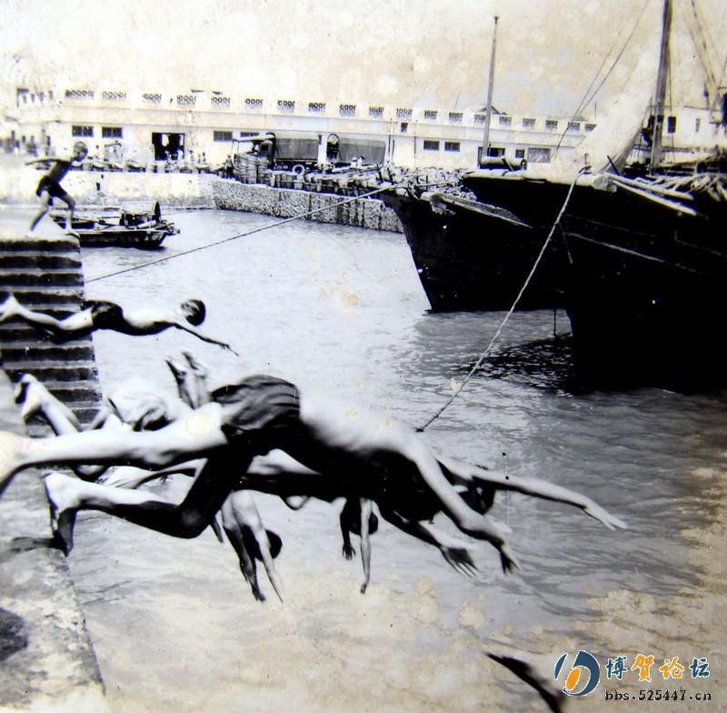 密麻麻泊满了等待进港出港的客货轮船、渔船、小艇;潮州会馆、广州会馆、高州会馆、