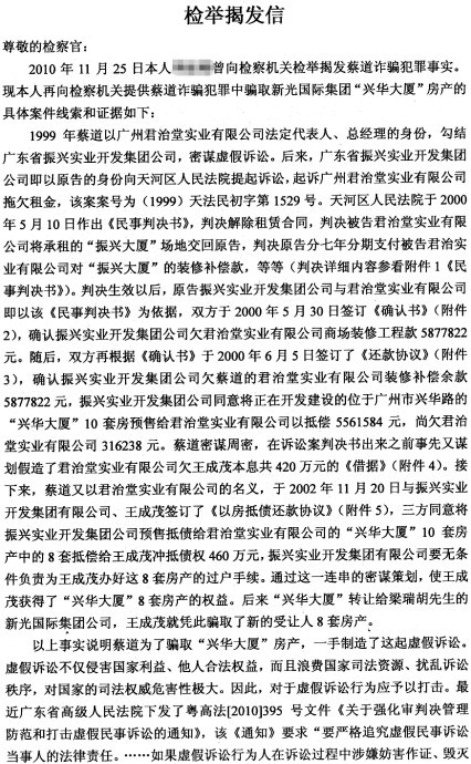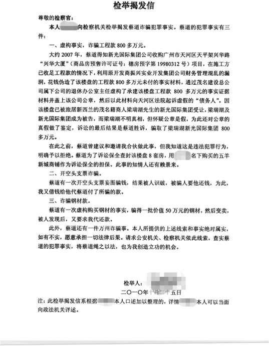 收到份材料,是关于举报蔡道是诈骗犯的确实证据,让我很是踌躇了一会,计划里只是打算向诸位朋友还原事情的真相,原本想就此抽身而退,不再与此事扯上什么关系的,但目前看来似乎还是欠考虑了。说老实的,没想到自己的这系列庭审直击会成为李振刚案情的唯一详情报道,思量再三,既然是事实,从澄清或者说是佐证老旁的直击的角度出发,老旁我还是决定要把材料公之于众,让诸位朋友都有个了解事实真相的机会。