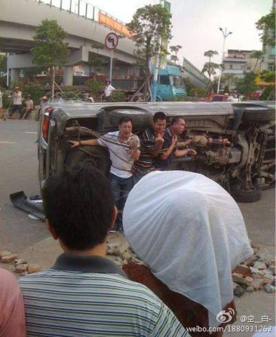 陈村三名村官被淋汽油绑车底的图文昨在新浪微博流传,并被广泛转贴。香港《苹果日报》报导说,事发地点是佛山市顺德区陈村镇的绀现村。发贴网民指,被绑三人是涉贪村官。他们被困绑在一架翻侧的客货车底。有村民更在他们身上淋上汽油。从照片上所见,三人面露惊恐表情,有人哭丧着脸,不停向村民解释,似在哀求村民释放他们。