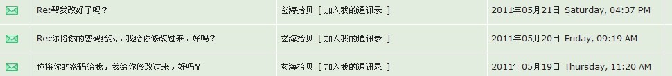 有一次,我发贴发错了,玄海拾贝说帮我修改,骗走我的号码,之后,就改了我的密码,用我的号码发贴。从2011年5月23日起至这个贴之前的贴,都是他那贱人发的。