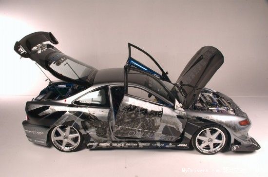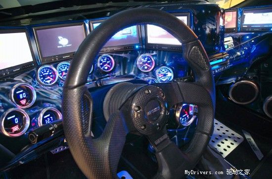 先不提那些BT的发动机、车身和轮胎的改装,这辆由本田1994款 Acura Integra LS改装而成的车内安装了数个DVD播放机, TravelPilot导航系统,美国SIRIUS卫星广播接收器和PS2游戏机等等,最强的是车身后部还藏着个变形金刚。引用Engadget的话说,这车就差地对地导弹了,而我要说,这车就差能变形了。国外改装车Fans的资金和动手能力都很BT啊!