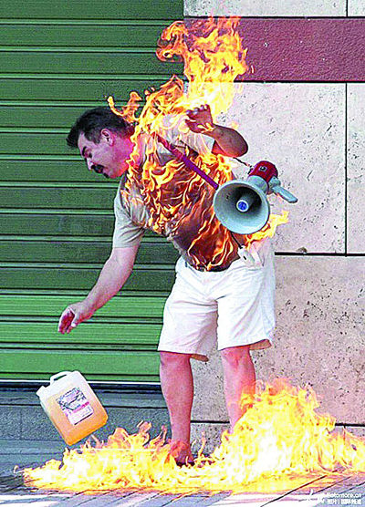 小老板银行前自焚(图)