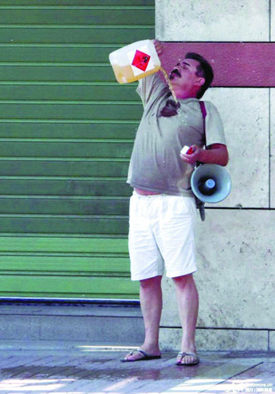 9月16日,一名男子在希腊港口城市塞萨洛尼基的一家银行前点火自焚。这是该男子第三次试图自焚,他说,自从银行贷款收紧后,企业难以为继。这位56岁的小企业主胸部烧伤,但无生命危险。据悉,受债务危机影响,希腊企业纷纷倒闭。