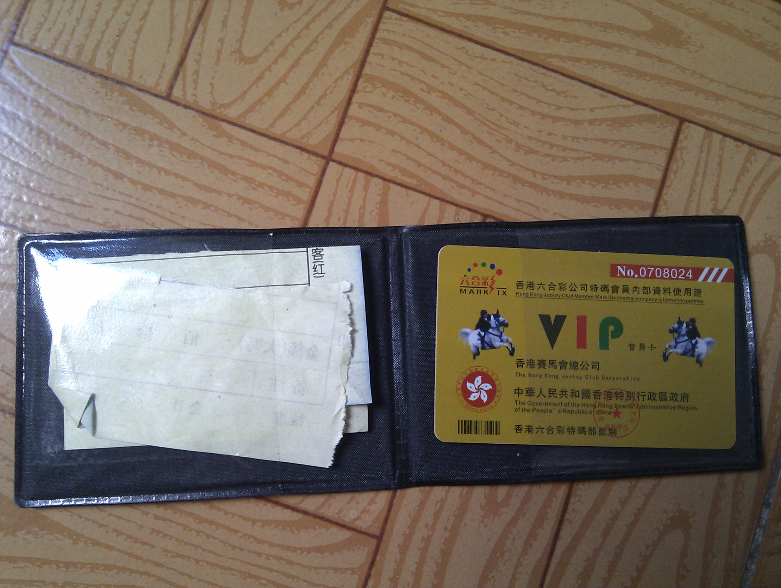 打开一看,里面是一张香港六合彩VIP会员卡及一位李姓市民花费4000元购买彩票的收款收据,吴女士随后向记者反映了情况。